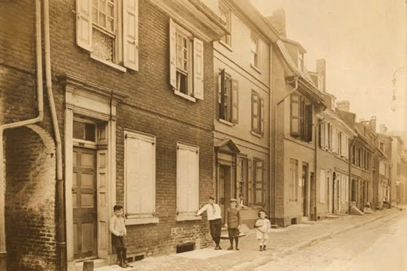 Nestled between Second Street and the Delaware River, thirty-two Federal and Georgian residences stand as reminders of the early days of Philadelphia.